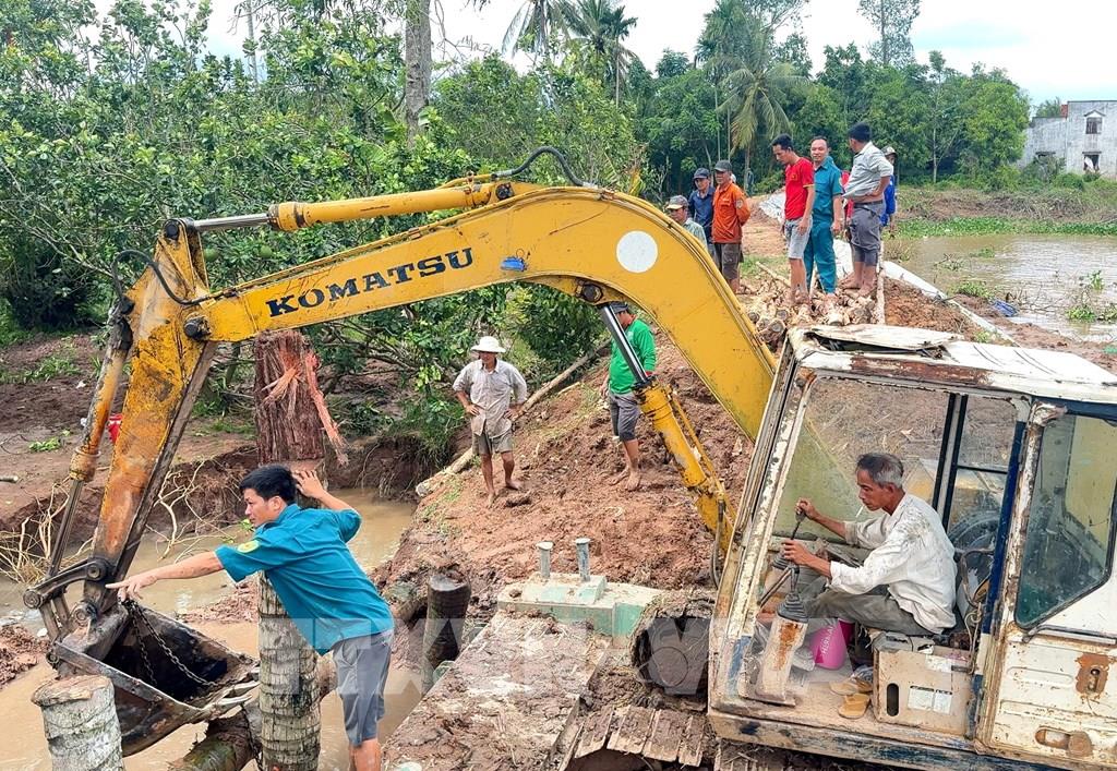 Theo người dân địa phương, khoảng 20 giờ cùng ngày, do ảnh hưởng của triều cường lên cao, một đoạn đê bao dài khoảng 20m bị sạt lở.