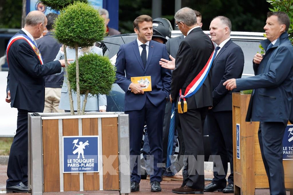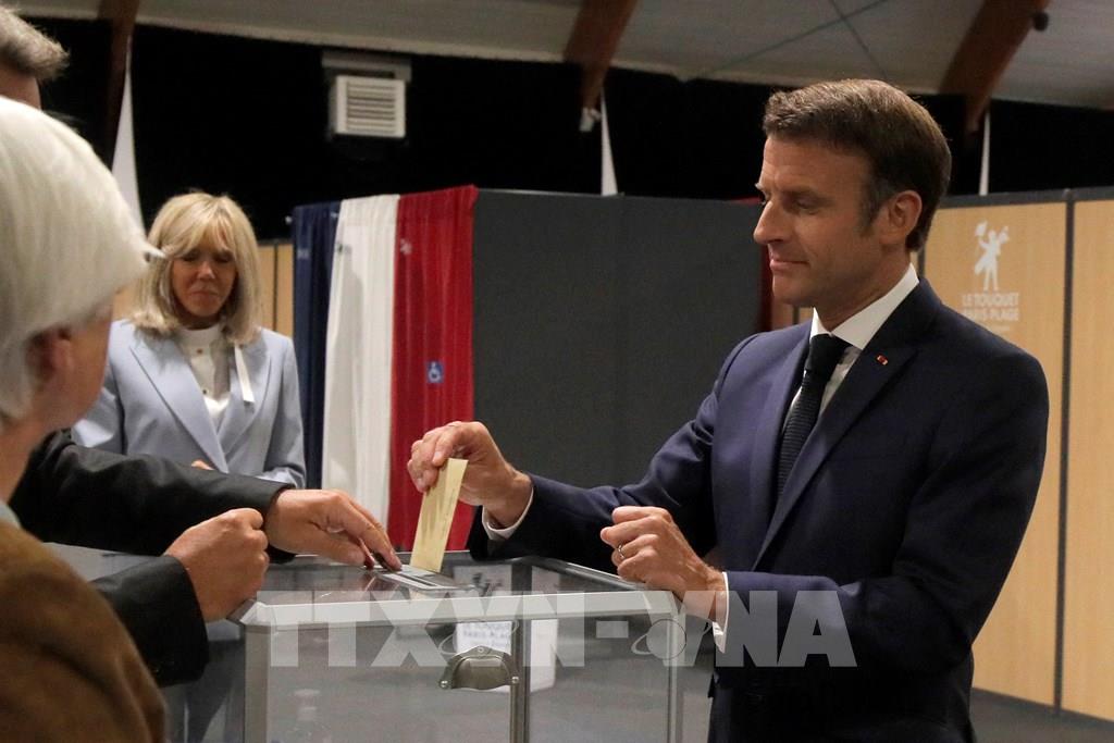 Tổng thống Pháp Emmanuel Macron bỏ phiếu tại vòng hai cuộc bầu cử Quốc hội, ở Le Touquet, miền Bắc Pháp, ngày 19/6/2022. Ảnh: AFP/TTXVN