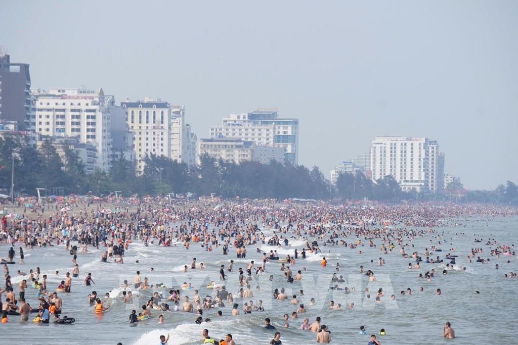 Du khách đến tắm biển Sầm Sơn dịp nghỉ lễ giỗ tổ Hùng Vương 10/3 âm lịch. Ảnh: Việt Hoàng - TTXVN