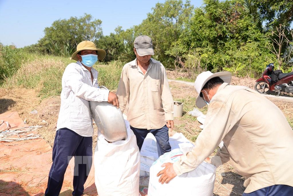 Nông dân tỉnh Đồng Tháp thu hoạch lúa Thu Đông. Ảnh: Công Trí-TTXVN