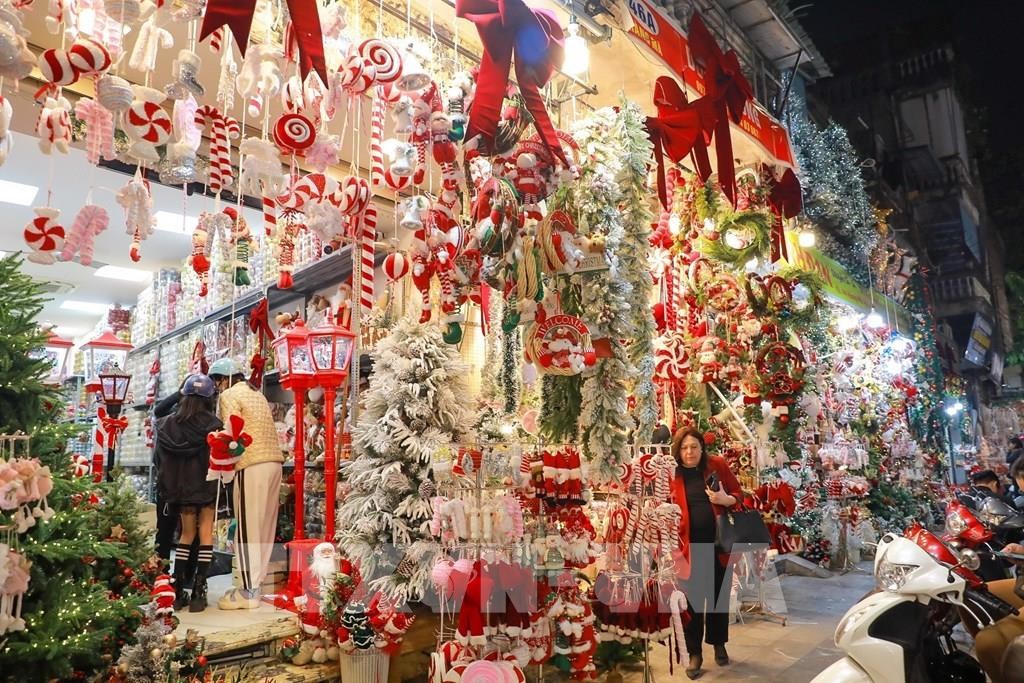 Phố Hàng Mã (phường Hoàn Kiếm) lung linh sắc màu không khí Giáng sinh. Ảnh: Khánh Hoà - TTXVN