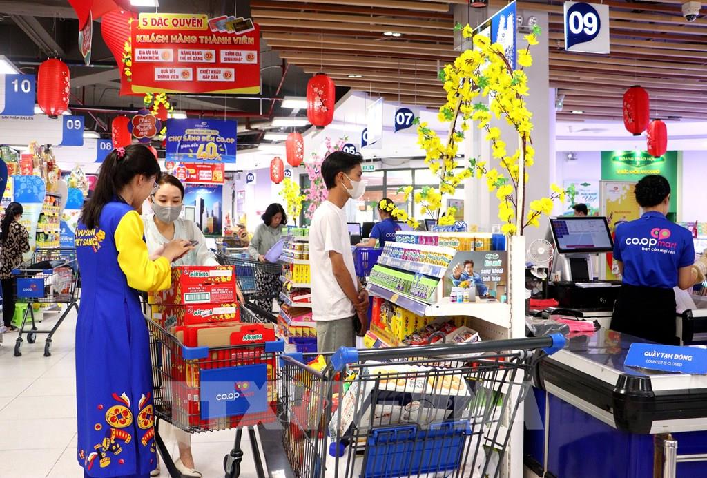 Người dân mua hàng hóa tại siêu thị Co.opmart Vĩnh Long. Ảnh: Phúc Sơn - TTXVN