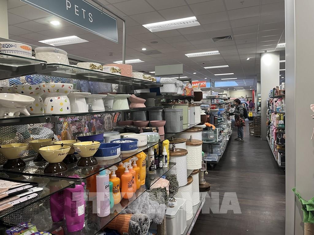 Các sản phẩm chăm sóc và phụ kiện cho thú cưng tại chuỗi bán lẻ giảm giá TK Maxx. Ảnh: Hương Giang - PV TTXVN tại Anh