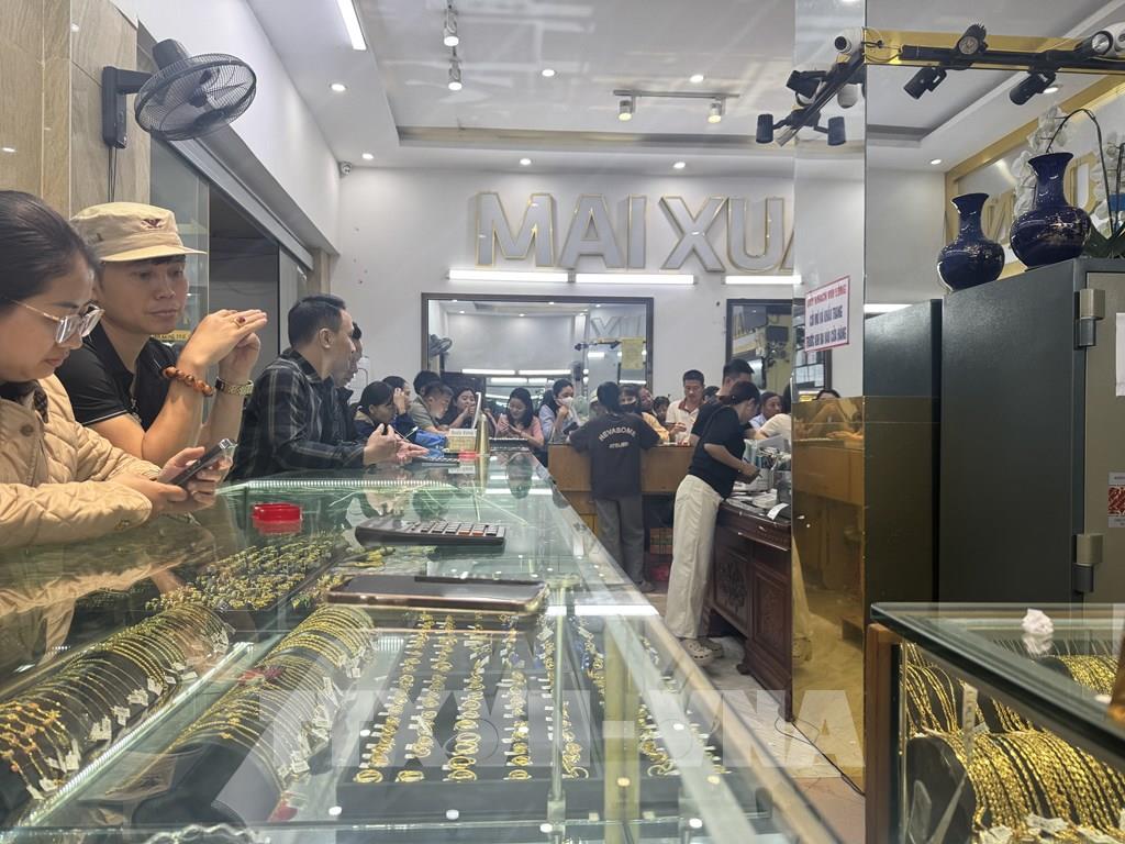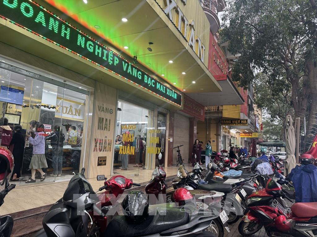 Rất đông khách hàng đến giao dịch mua, bán vàng cầu may trong những ngày đầu năm mới tại Hà Tĩnh. Ảnh: Hoàng Ngà - TTXVN
