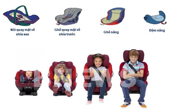 * Nhóm 0 và 0+:Ghế quay ngược chiều, dành cho trẻ dưới 12–15 tháng, giúp bảo vệ đầu và cổ.