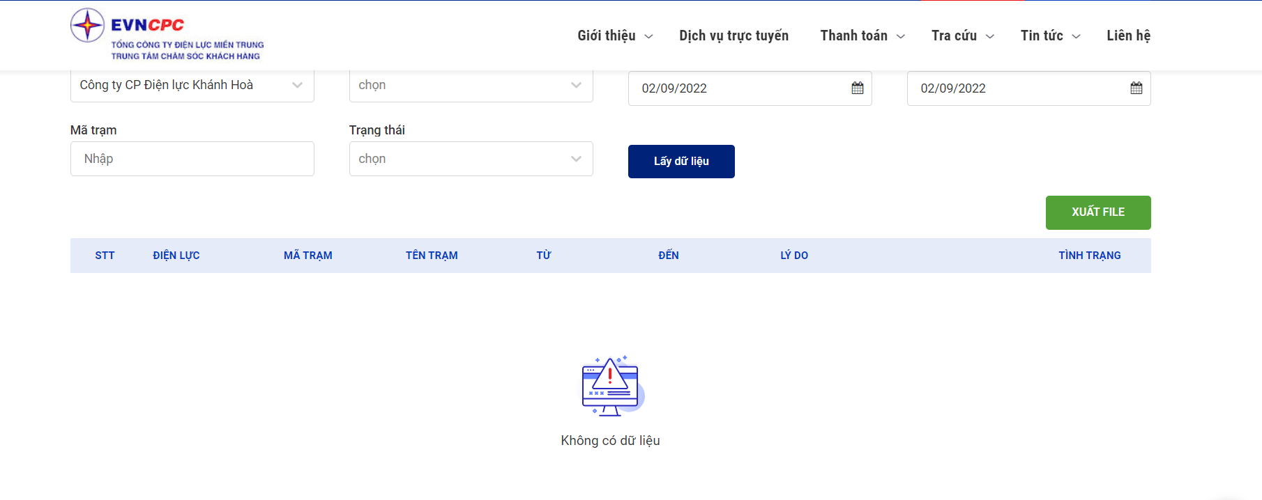 Lịch ngừng cấp điện trên địa bàn tỉnh Khánh Hòa ngày mai 2/9, cập nhật hồi 6h51 ngày 1/9 tại website của Tổng công ty Điện lực miền Trung. Ảnh: BNEWS/TTXVN