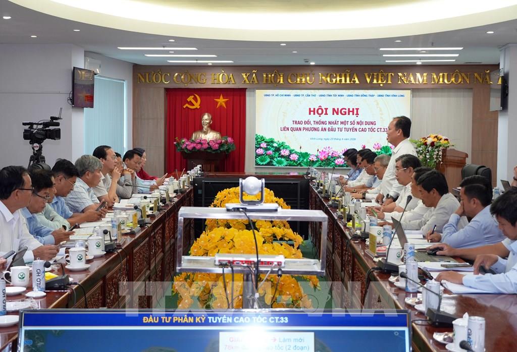 Đồng thời, đại diện các địa phương cơ bản thống nhất việc điều chỉnh tiến trình đầu tư xây dựng tuyến cao tốc CT.33 (TP. Hồ Chí Minh – Tiền Giang – Bến Tre – Trà Vinh – Sóc Trăng) thực hiện theo 2 giai đoạn, trong đó giai đoạn 1 hoàn thành trước năm 2030. Bên cạnh đó, giao cho Ủy ban nhân dân tỉnh Vĩnh Long là cơ quan có thẩm quyền tổ chức thực hiện giai đoạn 1 của dự án theo phương thức đối tác công tư, trên cơ sở các quy định của pháp luật hiện hành.