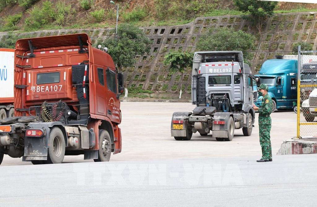 Những phương tiện di chuyển trong khu vực cửa khẩu quốc tế Hữu Nghị, tỉnh Lạng Sơn. Ảnh: Quang Duy – TTXVN