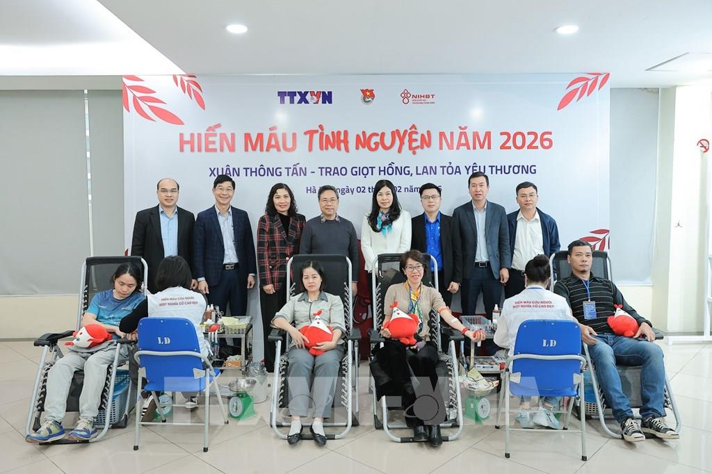 Phó Giáo sư, Tiến sĩ Nguyễn Hà Thanh đánh giá cao sự đồng hành của TTXVN trong nhiều năm qua, là đối tác tin cậy của Viện trong các chiến dịch truyền thông về hiến máu tình nguyện. Các chương trình như “Hành trình đỏ”, “Giọt hồng yêu thương” cùng nhiều chiến dịch vận động hiến máu quy mô lớn đã nhận được sự phối hợp hiệu quả của TTXVN. Nhiều đơn vị như: Trung tâm Nội dung số và Truyền thông, Báo điện tử Vietnamplus, Báo Tin tức và Dân tộc, Báo Vietnamnews và các chuyên trang thông tin của ngành đã tham gia đưa tin, viết bài, góp phần lan tỏa mạnh mẽ thông điệp hiến máu trên phạm vi cả nước. Phó Giáo sư cũng thông tin, nhu cầu máu hiện nay là rất lớn. Viện Huyết học – Truyền máu Trung ương cần tối thiểu khoảng 10.000 đơn vị máu, trong đó có khoảng 5.000 đơn vị máu nhóm O, nhằm đáp ứng nhu cầu cấp cứu, điều trị, giúp bệnh nhân có thêm cơ hội hồi phục, giảm bớt gánh nặng cho gia đình và tạo điều kiện thuận lợi cho các ca phẫu thuật.Chỉ sau thời gian ngắn phát động, Chương trình hiến máu tình nguyện “Xuân Thông tấn – Trao giọt hồng, lan tỏa yêu thương” đã nhận được sự hưởng ứng tích cực của đông đảo cán bộ, viên chức, người lao động TTXVN, với hơn 130 lượt đăng ký tham gia. Có mặt từ rất sớm tham gia hiến máu, chị Vũ Thị Linh Thảo, Phòng "Tổng hợp - Kiểm tra - Pháp chế" (Văn phòng TTXVN) chia sẻ rằng bản thân luôn mong muốn được góp một phần nhỏ bé của mình cho cộng đồng, đặc biệt trong dịp đầu xuân mới, khi nhu cầu máu cho cấp cứu tăng cao. Vì vậy, ngay khi cơ quan phát động phong trào hiến máu tình nguyện, chị đã chủ động đăng ký tham gia.