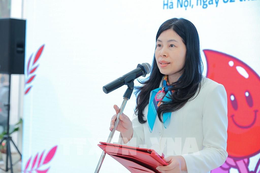 PGS.TS Nguyễn Hà Thanh, Viện trưởng Viện Huyết học - Truyền máu Trung ương phát biểu tại chương trình. Ảnh: Lê Đông - TTXVN