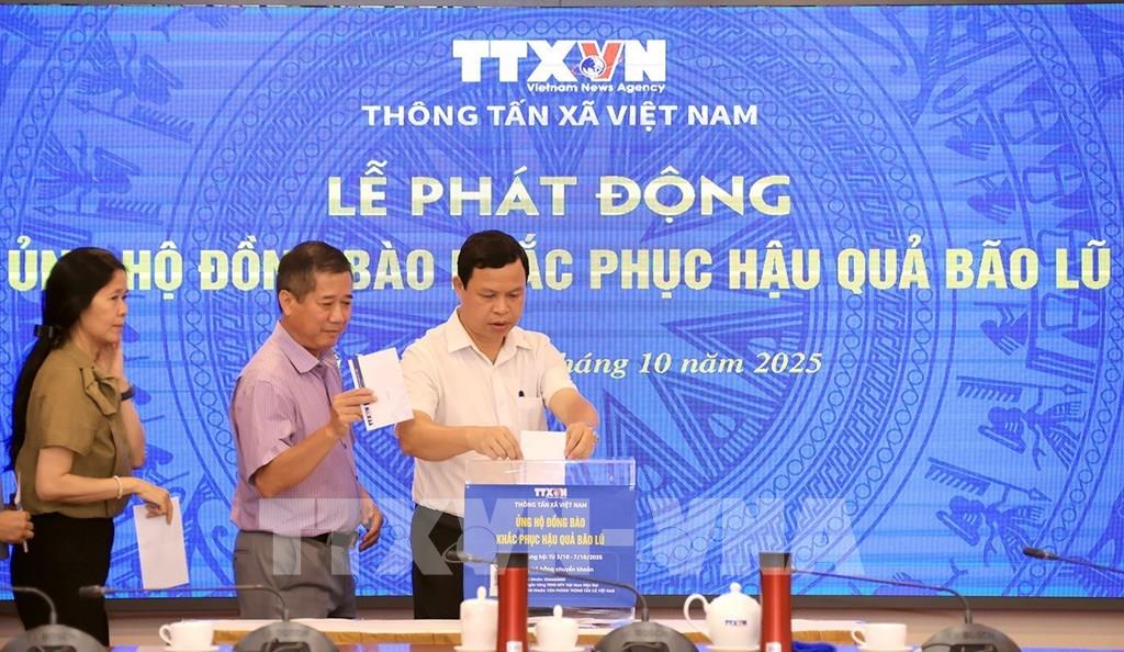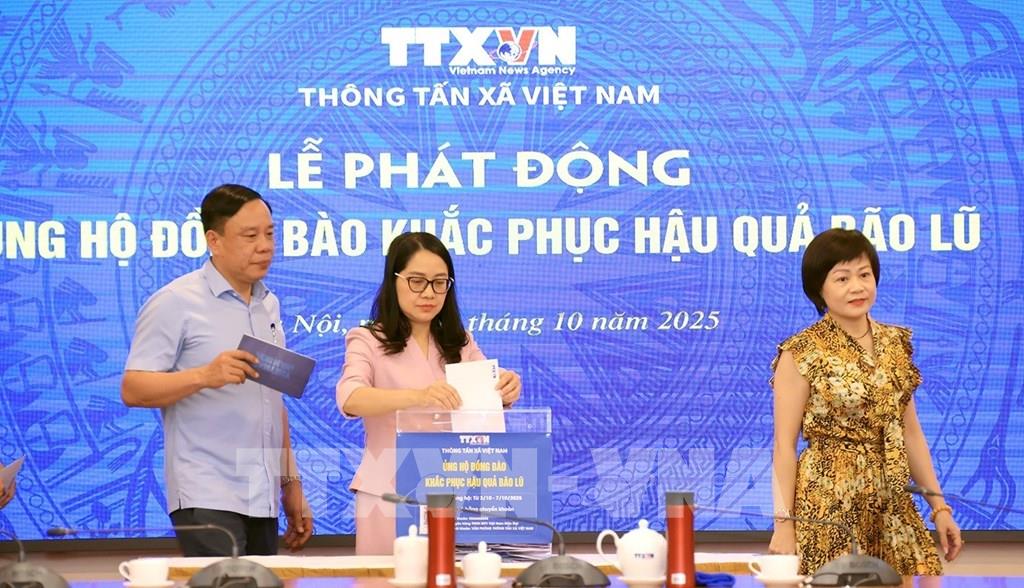 Phát huy truyền thống đoàn kết, với tinh thần “Tương thân tương ái”, “Lá lành đùm lá rách”, hưởng ứng lời kêu gọi của Ủy ban Trung ương Mặt trận Tổ quốc Việt Nam, chiều 3/10, tại trụ sở Trung tâm Thông tấn quốc gia, Thông tấn xã Việt Nam (TTXVN) tổ chức Lễ phát động ủng hộ đồng bào các tỉnh, thành phố khắc phục hậu quả bão lũ.