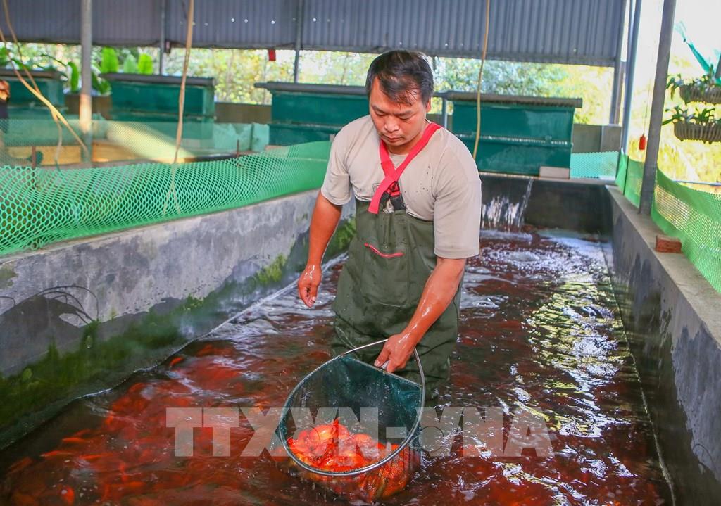 Giống cá chép hộ gia đình ông Dũng nuôi là loại cá chép Tam Dương, đây là giống cá cảnh nổi tiếng với màu đỏ rực rỡ, thân mình dày, vảy óng ánh, vây dài. Những năm gần đây, loại cá này được người dân ưa chuộng cúng vào dịp Tết ông Công ông Táo, đại diện cho sự may mắn, và thịnh vượng. Để có cá xuất bán đúng vào dịp cuối năm, ngay từ đầu tháng 5, ông Dũng đã nhân giống, sau đó thả cá con xuống các ao nuôi. Loại cá này rất dễ nuôi, chịu được thời tiết tốt, ít bị bệnh và đặc biệt là không phải cho ăn nhiều như các loại cá khác.