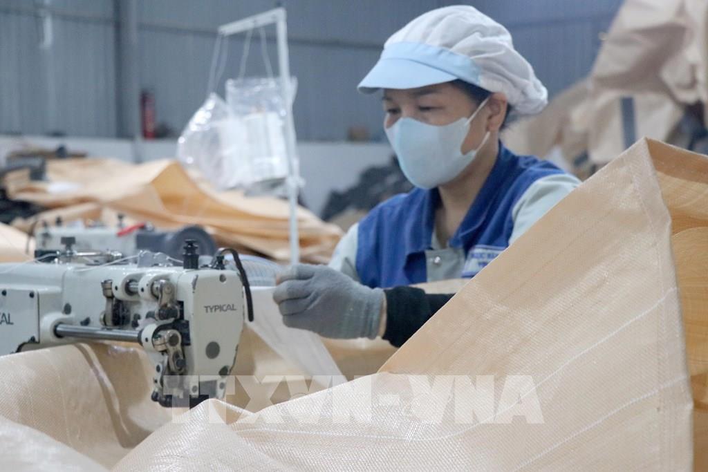 Công nhân làm việc tại Xưởng gia công bao bì PP xuất khẩu, Công ty TNHH Ngọc Năng Vina, xã Trường Sinh (Tuyên Quang). Ảnh: Hoàng Hải - TTXVN