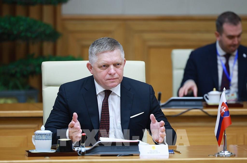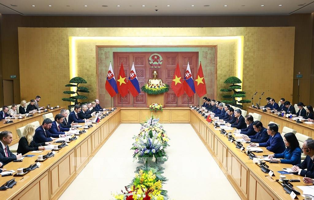 Thủ tướng Lê Minh Hưng hội đàm với Thủ tướng Slovakia Robert Fico. Ảnh: Dương Giang - TTXVN