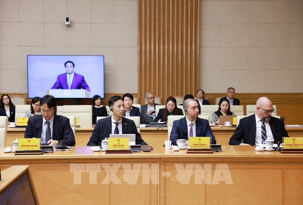 Thủ tướng Phạm Minh Chính chủ trì Hội nghị tham vấn các chuyên gia, tổ chức trong nước và quốc tế về thành lập Trung tâm tài chính quốc tế tại Việt Nam. Ảnh: Dương Giang-TTXVN