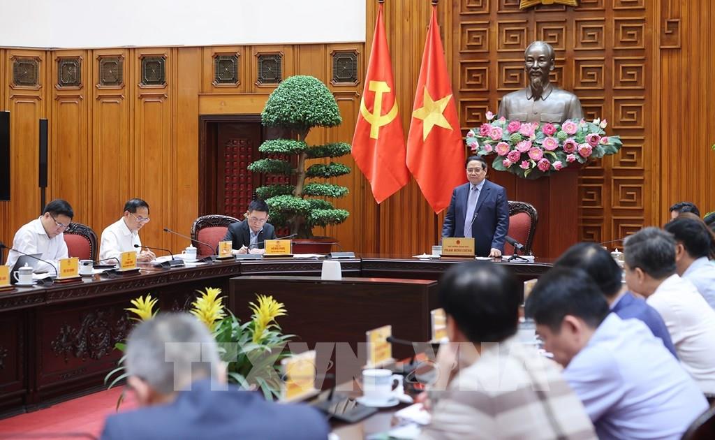 Thủ tướng Phạm Minh Chính chủ trì cuộc họp Thường trực Chính phủ về bình ổn giá xăng dầu. Ảnh: Dương Giang-TTXVN
