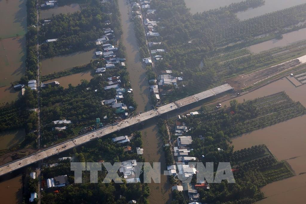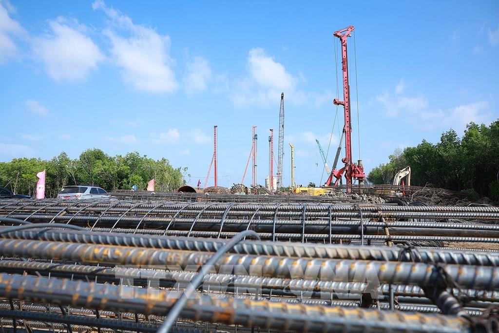 Dự án thi công dự án tuyến đường bộ cao tốc Cà Mau – Đất Mũi. Ảnh: Dương Giang-TTXVN