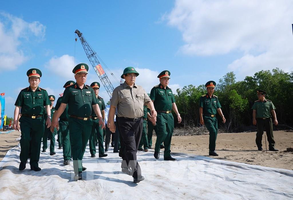 Đối với các kiến nghị của tỉnh Cà Mau, Thủ tướng Chính phủ nhất trí triển khai chống sạt lở, xâm thực bờ biển Cà Mau; yêu cầu tỉnh nghiên cứu triển khai kết hợp giữa kè đê, làm đường, lấn biển theo phương thức hợp tác công tư, những đoạn xung yếu thì làm dự án đề xuất đầu tư công. Đồng thời, nhất trí và hoan nghênh tỉnh Cà Mau xây dựng tuyến giao thông kết nối 2 trung tâm tỉnh sau hợp nhất (trung tâm Cà Mau và Bạc Liêu cũ).* Sáng cùng ngày, Thủ tướng Chính phủ Phạm Minh Chính và đoàn công tác đã thăm, động viên, kiểm tra sẵn sàng chiến đấu của các lực lượng vũ trang tại đặc khu Thổ Châu, tỉnh An Giang.
