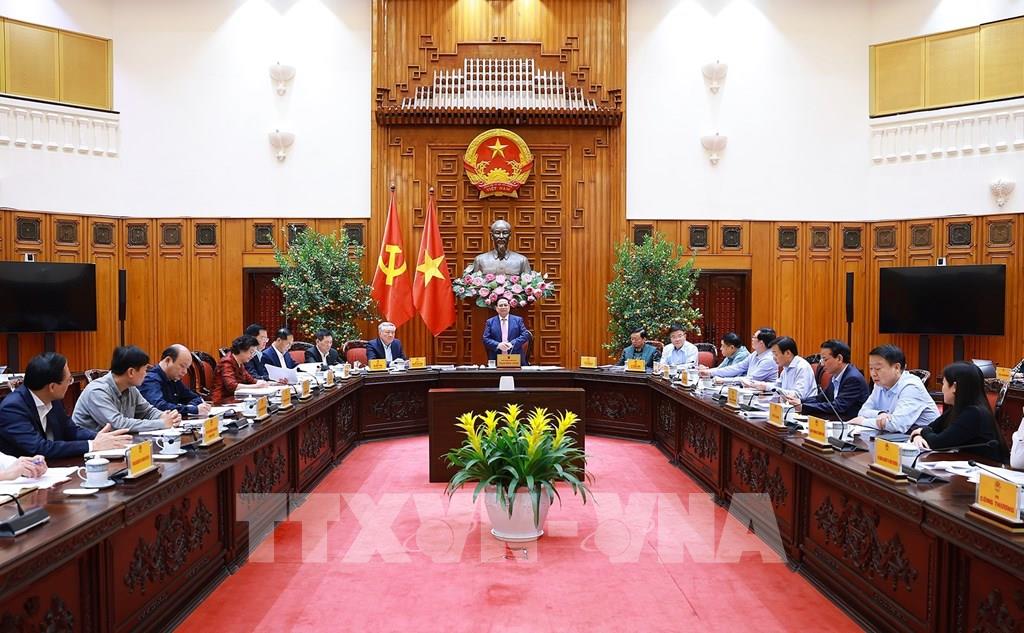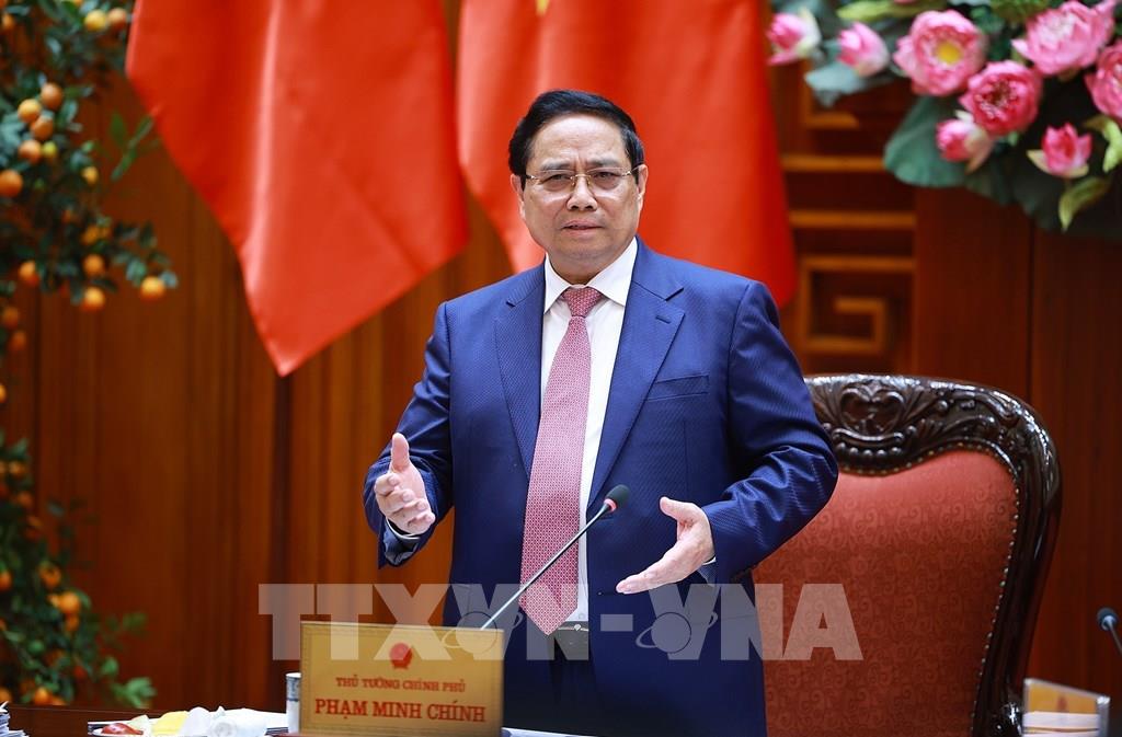 Thủ tướng Phạm Minh Chính chủ trì họp Thường trực Chính phủ về bình ổn giá xăng dầu. Ảnh: Dương Giang - TTXVN