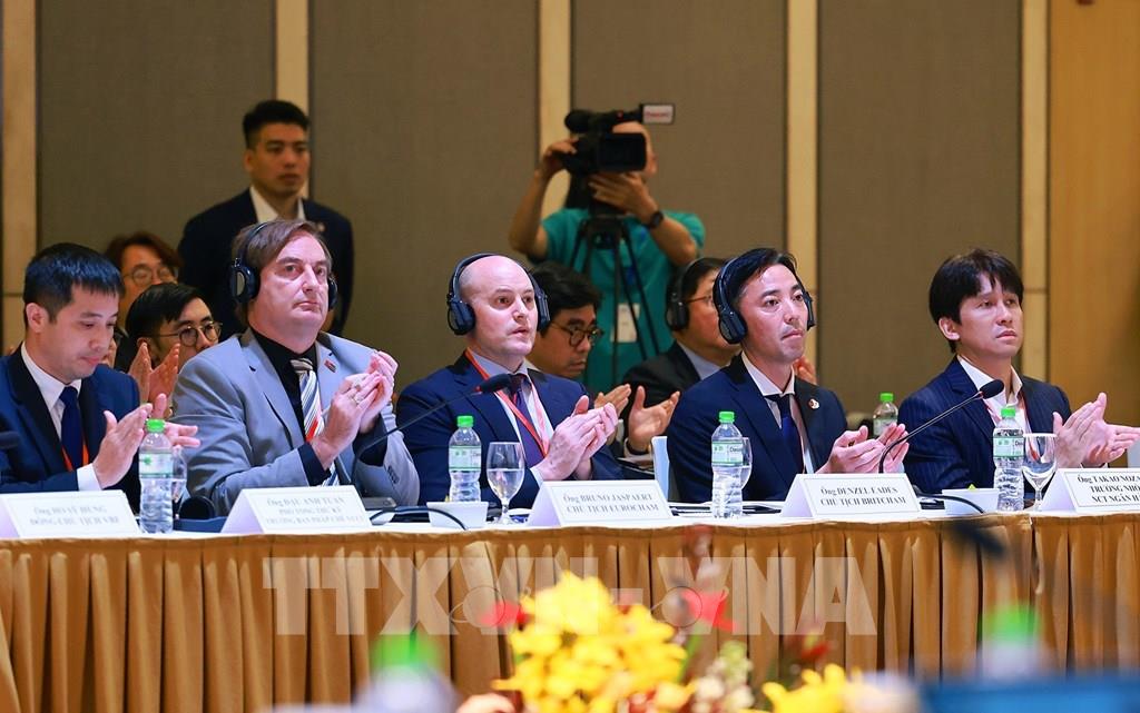 Thủ tướng cho biết, với phương châm “Kỷ cương, trách nhiệm; chủ động, kịp thời; tăng tốc, sáng tạo; hiệu quả, bền vững”, Chính phủ sẽ tập trung chỉ đạo các bộ, ngành, địa phương khẩn trương hành động, nỗ lực, quyết tâm khắc phục mọi khó khăn, vượt qua mọi thách thức, giữ vững tinh thần vượt khó, đoàn kết, tự lực, tự cường, chủ động thích ứng, linh hoạt, hành động quyết liệt, khoa học, hiệu quả, tích cực đổi mới, sáng tạo để thực hiện thắng lợi những những mục tiêu, nhiệm vụ được Đảng, Quốc hội đề ra trong năm 2025, tạo nền tảng hoàn thành Kế hoạch phát triển kinh tế - xã hội 5 năm giai đoạn 2021-2025 và Chiến lược phát triển kinh tế - xã hội 10 năm giai đoạn 2021-2030. Giải đáp các đề xuất, kiến nghị của doanh nghiệp và cho biết, Chính phủ đang nỗ lực giải quyết các dự án tồn đọng kéo dài nhiều năm, trên tinh thần “lợi ích hài hòa, rủi ro chia sẻ”, Thủ tướng Chính phủ tin tưởng, với tinh thần hợp tác, trách nhiệm và tầm nhìn dài hạn, cộng đồng doanh nghiệp sẽ tiếp tục đồng hành cùng Việt Nam, cùng nhau kiến tạo một nền kinh tế xanh, cạnh tranh và bền vững, vì thịnh vượng chung của cả khu vực và thế giới; góp phần cùng Việt Nam vững bước tiến vào kỷ nguyên mới, kỷ nguyên hòa bình, giàu mạnh, phồn vinh, văn minh, hạnh phúc, vững bước tiến lên chủ nghĩa xã hội.Tin liên quan