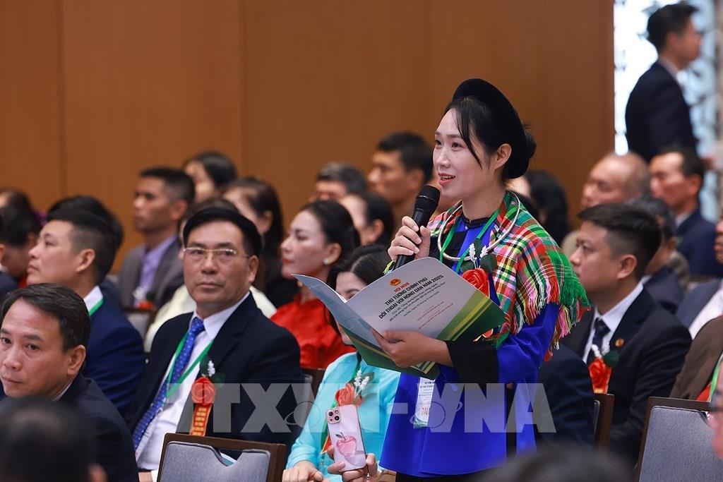 Bà Vương Thị Thương, nông dân tỉnh Lạng Sơn phát biểu ý kiến. Ảnh: Dương Giang-TTXVN