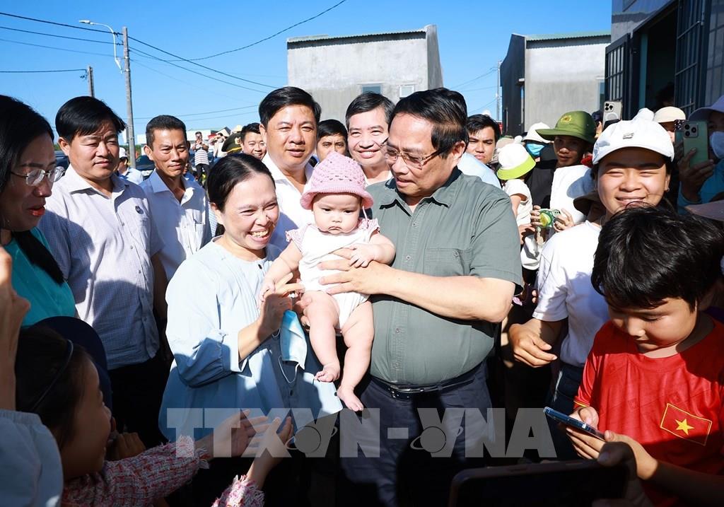 Thủ tướng Phạm Minh Chính thăm, chúc Tết nhân dân Khu Tái định cư xã Tuy An Tây, phía Đông tỉnh Đắk Lắk. Ảnh: Dương Giang-TTXVN