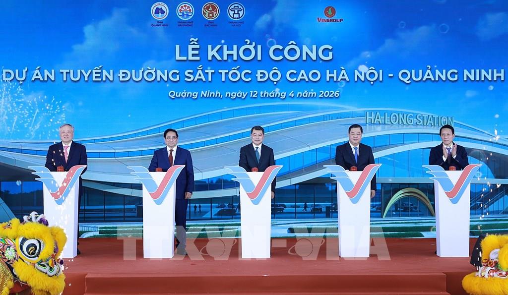 Ông Nguyễn Việt Quang, Phó Chủ tịch kiêm Tổng giám đốc Tập đoàn Vingroup - đại diện chủ đầu tư chia sẻ, việc khởi công dự án đã khẳng định quyết tâm của Vingroup đóng góp vào phát triển cơ sở hạ tầng, từng bước kiến tạo hệ thống hạ tầng giao thông hiện đại chuẩn quốc tế, góp phần thúc đẩy phát triển kinh tế - xã hội, nâng cao chất lượng sống cho người dân Việt Nam. Phó Chủ tịch kiêm Tổng giám đốc Tập đoàn Vingroup cho biết thêm, tuyến đường sắt tốc độ cao Hà Nội - Quảng Ninh là dự án thứ hai do VinSpeed triển khai thực hiện. Trước đó, cuối năm 2025, VinSpeed đã chính thức động thổ tuyến đường sắt Bến Thành - Cần Giờ tại Thành phố Hồ Chí Minh, dự kiến hoàn thành vào quý IV/2028. Việc liên tiếp khởi công 2 dự án đường sắt tốc độ cao tại hai miền Nam, Bắc không chỉ khẳng định năng lực vượt trội và khả năng triển khai thực tế của VinSpeed, mà còn tiên phong đặt nền móng cho sự phát triển của ngành công nghiệp đường sắt và công nghiệp hỗ trợ trị giá hàng tỷ USD, góp phần nâng tầm vị thế và năng lực cạnh tranh cho Việt Nam trên trường quốc tế. Thủ tướng Chính phủ Lê Minh Hưng và các đồng chí lãnh đạo, nguyên lãnh đạo Đảng, Nhà nước; các bộ, ngành, địa phương đã thực hiện nghi thức chính thức khởi công dự án tuyến đường sắt tốc độ cao Hà Nội - Quảng Ninh, tin tưởng dự án sẽ về đúng hẹn, tạo động lực cho giai đoạn phát triển mới của cả vùng, góp phần đưa đất nước phát triển giàu mạnh, văn minh, phồn vinh, hạnh phúc; đời sống nhân dân ngày càng hạnh phúc, ấm no.Tin liên quan