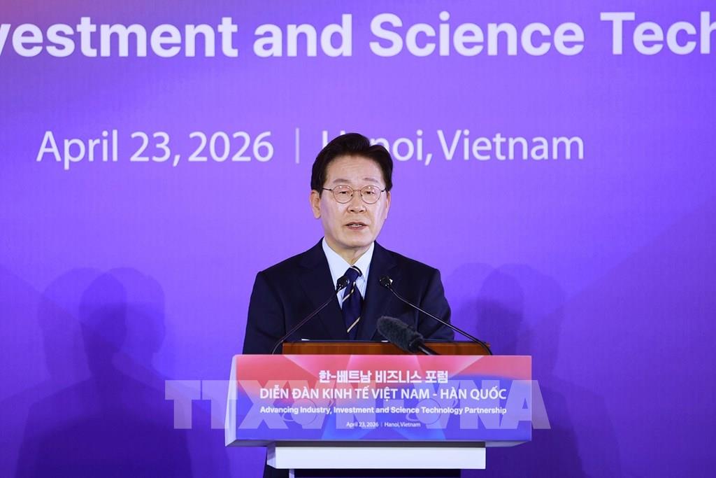 Trong khuôn khổ chuyến thăm cấp Nhà nước tới Việt Nam của Tổng thống Đại Hàn Dân Quốc Lee Jae Myung và Phu nhân, chiều 23/4, tại Hà Nội, Thủ tướng Chính phủ Lê Minh Hưng và Tổng thống Đại Hàn Dân Quốc Lee Jae Myung cùng dự Diễn đàn kinh tế Việt Nam – Hàn Quốc có chủ đề “Nâng cao quan hệ đối tác công nghiệp, đầu tư và khoa học công nghệ”.