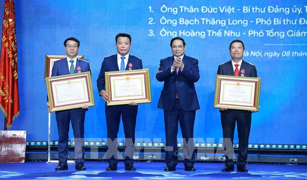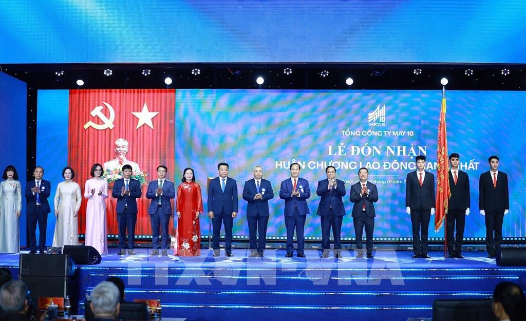 Thủ tướng Phạm Minh Chính trao Huân chương Lao động hạng Nhất cho Tổng Công ty May 10. Ảnh: Dương Giang-TTXVN