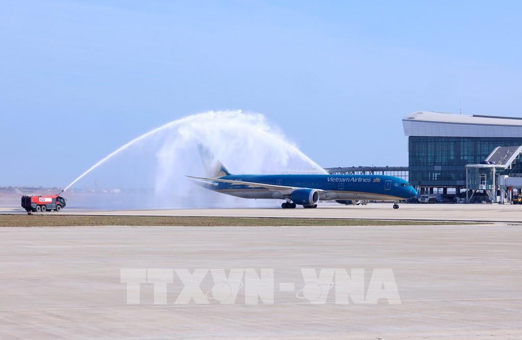 Máy bay Boeing 787 Dreamliner mang số hiệu VN1 của Hãng hàng không quốc gia Việt Nam (Vietnam Airlines) hạ cánh xuống đường băng số 1 sân bay quốc tế Long Thành. sáng 19/12. Ảnh: Quốc Khánh - TTXVN