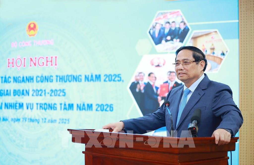 Thủ tướng Phạm Minh Chính dự Hội nghị tổng kết công tác ngành Công Thương năm 2025. Ảnh: Dương Giang-TTXVN
