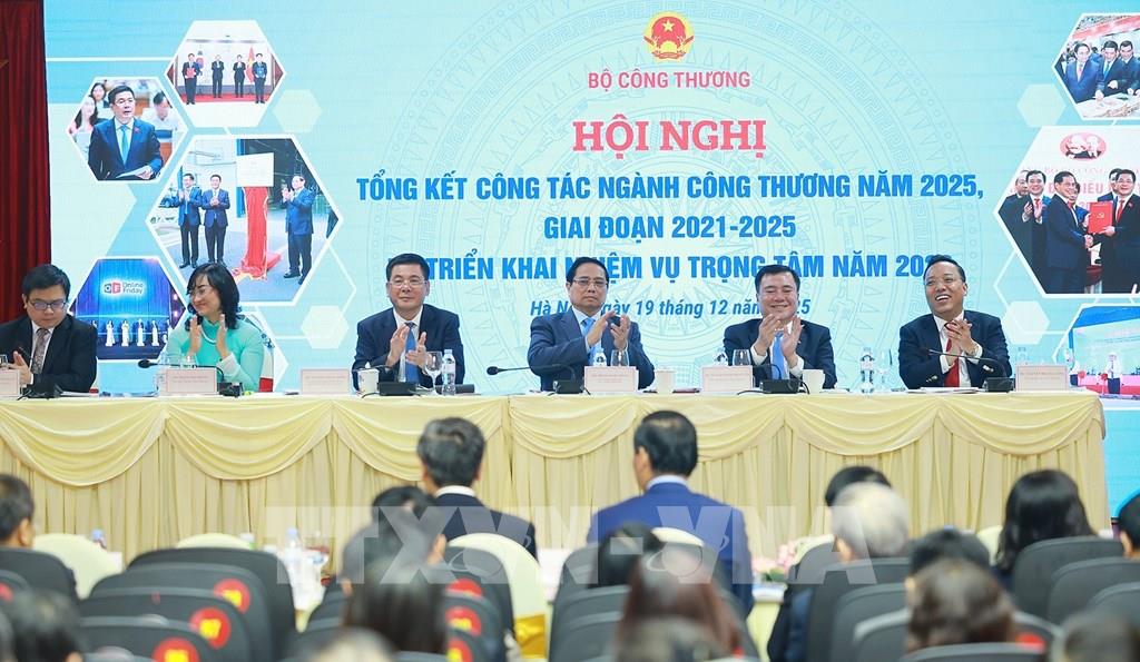 Năm 2026 - năm đầu tiên thực hiện Nghị quyết Đại hội Đảng toàn quốc lần thứ XIV và Kế hoạch phát triển kinh tế - xã hội 5 năm 2026 - 2030, ngành Công Thương xác định quyết tâm cao nhất ngay từ đầu năm, phấn đấu hoàn thành thắng lợi các mục tiêu đề ra, tạo nền tảng vững chắc cho cả giai đoạn mới. Trong đó, tiếp tục quán triệt sâu sắc và tổ chức thực hiện nghiêm túc, hiệu quả các chủ trương của Đảng, Nghị quyết của Quốc hội và chỉ đạo của Chính phủ, Thủ tướng Chính phủ; tiếp tục đột phá trong xây dựng, hoàn thiện thể chế, chính sách; đẩy mạnh phát triển sản xuất công nghiệp, với mục tiêu phấn đấu nâng chỉ số sản xuất công nghiệp (IIP) tăng trên 10%; đẩy mạnh phát triển thương mại, phấn đấu tăng kim ngạch xuất khẩu trên 8%và duy trì xuất siêu bền vững; nâng cao hiệu lực, hiệu quả quản lý nhà nước và năng lực cạnh tranh của ngành. Phát biểu tại Hội nghị, Thủ tướng Chính phủ Phạm Minh Chính nhấn mạnh, nhiệm kỳ 2021 - 2025 và đặc biệt là năm 2025, tình hình trong nước và thế giới tiếp tục đối mặt với khó khăn, thách thức, nhiều hơn thời cơ, thuận lợi. Trong điều kiện đó, đất nước ta vẫn đạt được những thành tựu rất tích cực trên hầu hết các lĩnh vực. Kinh tế vĩ mô cơ bản ổn định, duy trì tốc độ tăng trưởng thuộc nhóm cao hàng đầu thế giới; lạm phát được kiểm soát tốt; các cân đối lớn của nền kinh tế được bảo đảm; nợ công, nợ chính phủ, bội chi ngân sách được kiểm soát tốt; đời sống nhân dân được nâng lên; an sinh xã hội được quan tâm, đảm bảo; an ninh, quốc phòng giữ vững và củng cố; uy tín, vị thế của đất nước được nâng lên. Thủ tướng Chính phủ cho rằng, kết quả trên có được nhờ sự lãnh đạo, chỉ đạo sâu sát, kịp thời, quyết liệt của Ban Chấp hành Trung ương, mà trực tiếp, thường xuyên là Bộ Chính trị, Ban Bí thư, đứng đầu là đồng chí Tổng Bí thư; sự chủ động, hiệu quả của Quốc hội trong hoàn thiện thể chế và giám sát; sự quyết liệt, bản lĩnh, sáng tạo, kịp thời hiệu quả của Chính phủ, Thủ tướng Chính phủ; sự thống nhất trong tổ chức triển khai thực hiện của các bộ, ngành, địa phương; sự đồng lòng, ủng hộ của nhân dân và cộng đồng doanh nghiệp; sự giúp đỡ của bạn bè quốc tế. Trong thành tích chung đó, có sự đóng góp của Bộ Công Thương và ngành Công Thương.Thay mặt Tổng Bí thư Tô Lâm và các đồng chí lãnh đạo Đảng, Nhà nước chúc mừng, đánh giá cao kết quả mà Bộ và ngành Công Thương đạt được trong năm 2025 và cả nhiệm kỳ 2021 - 2025, Thủ tướng Chính phủ tóm tắt thành tựu của ngành Công Thương với dòng chữ: “Công nghiệp tăng trưởng có chiều sâu; thương mại mở rộng và nâng cao; thị trường đa dạng, bền vững; nội bộ đoàn kết, thống nhất cao; tổ chức cán bộ tinh, gọn, mạnh”. Về một số hạn chế, bất cập, Thủ tướng Chính phủ cũng chỉ rõ “3 xu hướng” lớn đang nổi lên, cần lưu ý, đó là: Xu hướng phân tách, phân mảnh, căng thẳng địa chính trị, xung đột vũ trang, các vấn đề an ninh phi truyền thống; tăng trưởng kinh tế, thương mại, đầu tư toàn cầu chậm lại, rủi ro gia tăng, việc duy trì các cơ chế đa phương có những thách thức; xu hướng chuyển đổi kép “xanh - số”, kinh tế tri thức, kinh tế tuần hoàn… đặt ra nhiệm vụ mới. Chỉ rõ các bài học trong chỉ đạo, điều hành, tổ chức thực hiện các nhiệm vụ, Thủ tướng Chính phủ cho rằng phải thực hiện quyết liệt, chủ động, sáng tạo chủ trương, đường lối của Đảng, chính sách, pháp luật của Nhà nước; nêu cao sự đoàn kết, thống nhất, cá thể hóa trách nhiệm người đứng đầu; phân công nhiệm vụ bảo đảm “6 rõ: Rõ người, rõ việc, rõ trách nhiệm, rõ thẩm quyền, rõ thời gian, rõ kết quả”; nắm chắc tình hình thực tiễn, phản ứng chính sách chủ động, kịp thời, linh hoạt, hiệu quả; quyết tâm phải cao, nỗ lực phải lớn, hành động phải quyết liệt; dám nghĩ, dám làm, dám chịu trách nhiệm. Cùng với đó, nghiêm túc chấn chỉnh kỷ luật kỷ cương, đề cao tinh thần trách nhiệm, không đùn đẩy, né tránh; khen thưởng, kỷ luật kịp thời, nghiêm minh; bản lĩnh, kiên trì, kiên định, kiên quyết không lùi bước trước thách thức; không chủ quan trước thuận lợi, không bi quan trước khó khăn; kiên định mục tiêu đề ra và huy động sự vào cuộc của cả hệ thống chính trị, nhân dân và cộng đồng doanh nghiệp, bạn bè quốc tế để thực hiện. Thủ tướng Chính phủ Phạm Minh Chính lưu ý, năm 2026 có ý nghĩa đặc biệt quan trọng, là năm đầu tiên thực hiện Nghị quyết Đại hội XIV của Đảng và Kế hoạch phát triển kinh tế - xã hội 5 năm 2026 - 2030, với mục tiêu tăng trưởng kinh tế 2 con số, tạo nền tảng vững chắc để hiện thực hóa “2 mục tiêu 100 năm”, đưa đất nước vững bước tiến vào kỷ nguyên mới. Thủ tướng Phạm Mi