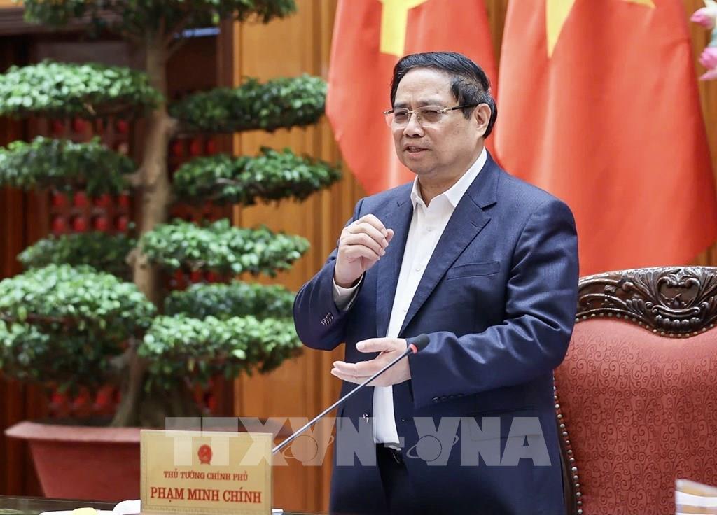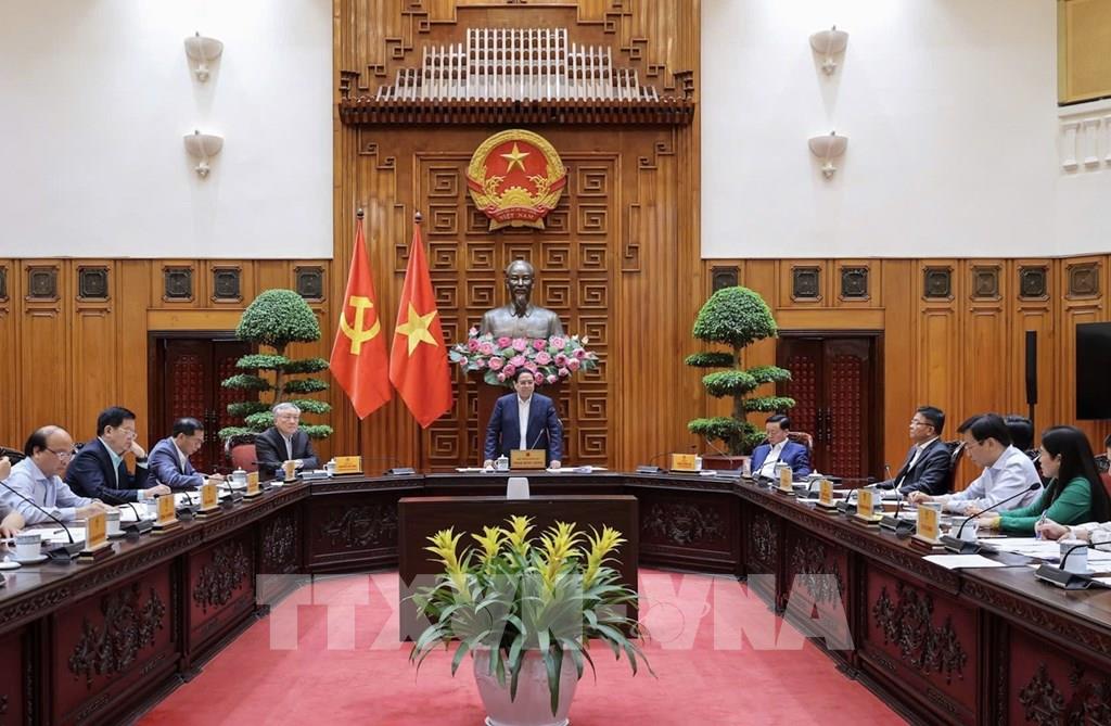 Thủ tướng Phạm Minh Chính chủ trì họp Thường trực Chính phủ để cho ý kiến về các chính sách nhà ở xã hội và nguồn kinh phí ổn định giá xăng dầu. Ảnh: Dương Giang-TTXVN