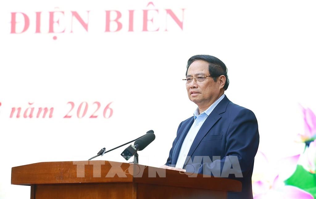 Tỉnh phải đẩy mạnh giải ngân vốn đầu tư công ngay từ đầu năm 2026, nhất là các công trình, dự án quan trọng, trọng điểm quốc gia; mở rộng không gian phát triển mới; đẩy mạnh kết nối, thu hút doanh nghiệp, nhà đầu tư, tạo động lực phát triển, tạo thêm nhiều công ăn việc làm, tăng thu nhập cho người dân tại địa phương. Tỉnh tập trung cải thiện mạnh mẽ hơn nữa môi trường đầu tư kinh doanh; nâng cao chất lượng giải quyết thủ tục hành chính; tăng cường kỷ luật, kỷ cương hành chính; chú trọng đào tạo đội ngũ cán bộ, nâng cao trách nhiệm công vụ của cán bộ, công chức. Là địa phương còn nhiều khó khăn và đối tượng chính sách, xã hội lớn, Thủ tướng Phạm Minh Chính chỉ đạo tỉnh Điện Biên phải làm tốt các chính sách an sinh xã hội, công tác người có công, bảo đảm tiếp cận bình đẳng về y tế, giáo dục; tiếp tục giữ vững an ninh chính trị, bảo đảm trật tự an toàn xã hội; giữ vững chủ quyền lãnh thổ, an ninh biên giới quốc gia; làm tốt công tác dân tộc, tôn giáo. Điện Biên tiếp tục đẩy mạnh xây dựng, chỉnh đốn Đảng và hệ thống chính trị trong sạch, vững mạnh toàn diện; nâng cao năng lực lãnh đạo, sức chiến đấu của tổ chức Đảng và đảng viên; tổ chức bầu cử đại biểu Quốc hội khóa XVI và đại biểu Hội đồng Nhân dân các cấp nhiệm kỳ 2026-2031 công khai, minh bạch, đúng luật, thành công. Định hướng, khuyến khích, giao nhiệm vụ cho tỉnh Điện Biên, Thủ tướng tóm gọn trong 50 chữ: “Điện Biên Phủ bất diệt - Sử sách mãi hào hùng - Văn hóa giàu bản sắc - Nông nghiệp phát triển sâu - Công nghiệp vươn tầm cao - Du lịch như Ban nở - Hạ tầng phải mở đường - Khoa học phải tiên phong - Đồng bào thoát nghèo nhanh - Tỉnh giàu dân hạnh phúc”. Thủ tướng Phạm Minh Chính nhất trí và chỉ đạo, giao nhiệm vụ cụ thể cho các bộ, ngành phối hợp chặt chẽ với tỉnh Điện Biên giải quyết đề xuất, kiến nghị của tỉnh liên quan điều chỉnh, bổ sung Quy hoạch điện VIII; đầu tư hệ thống lưới điện truyền tải và trạm biến áp; đầu tư tuyến đường bộ cao tốc Sơn La - Điện Biên - Cửa khẩu Tây Trang; hỗ trợ bố trí vốn đầu tư cấp điện nông thôn; ban hành quy định về định mức biên chế cấp xã; thí điểm chia sẻ nguồn nước giữa các vùng…Tin liên quan