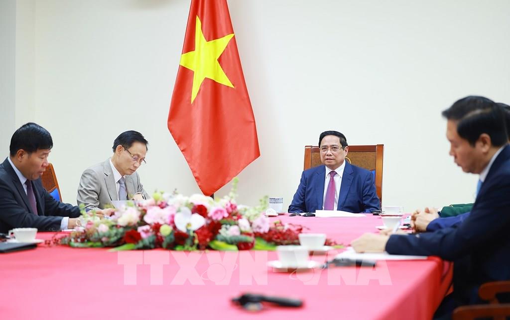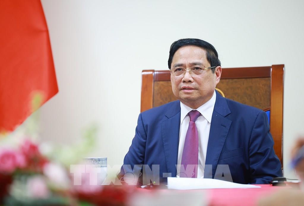 Thủ tướng Phạm Minh Chính điện đàm với Thủ tướng Malaysia Anwar Ibrahim. Ảnh: Dương Giang-TTXVN