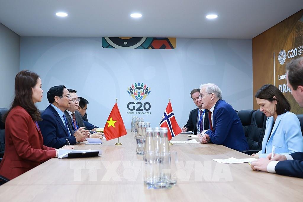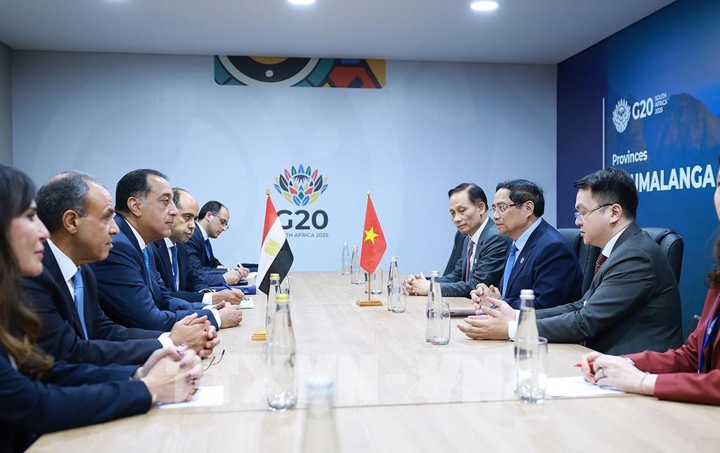 Theo đặc phái viên TTXVN, sáng 23/11 theo giờ địa phương, tiếp tục các hoạt động tại Hội nghị thượng đỉnh Nhóm các nền kinh tế phát triển và mới nổi hàng đầu thế giới (G20) tại Cộng hoà Nam Phi, Thủ tướng Chính phủ Phạm Minh Chính đã có cuộc gặp Thủ tướng Đức Friedrich Merz, Thủ tướng Ai Cập Mostafa Madbouly và Thủ tướng Na Uy Jonas Gahr Store.