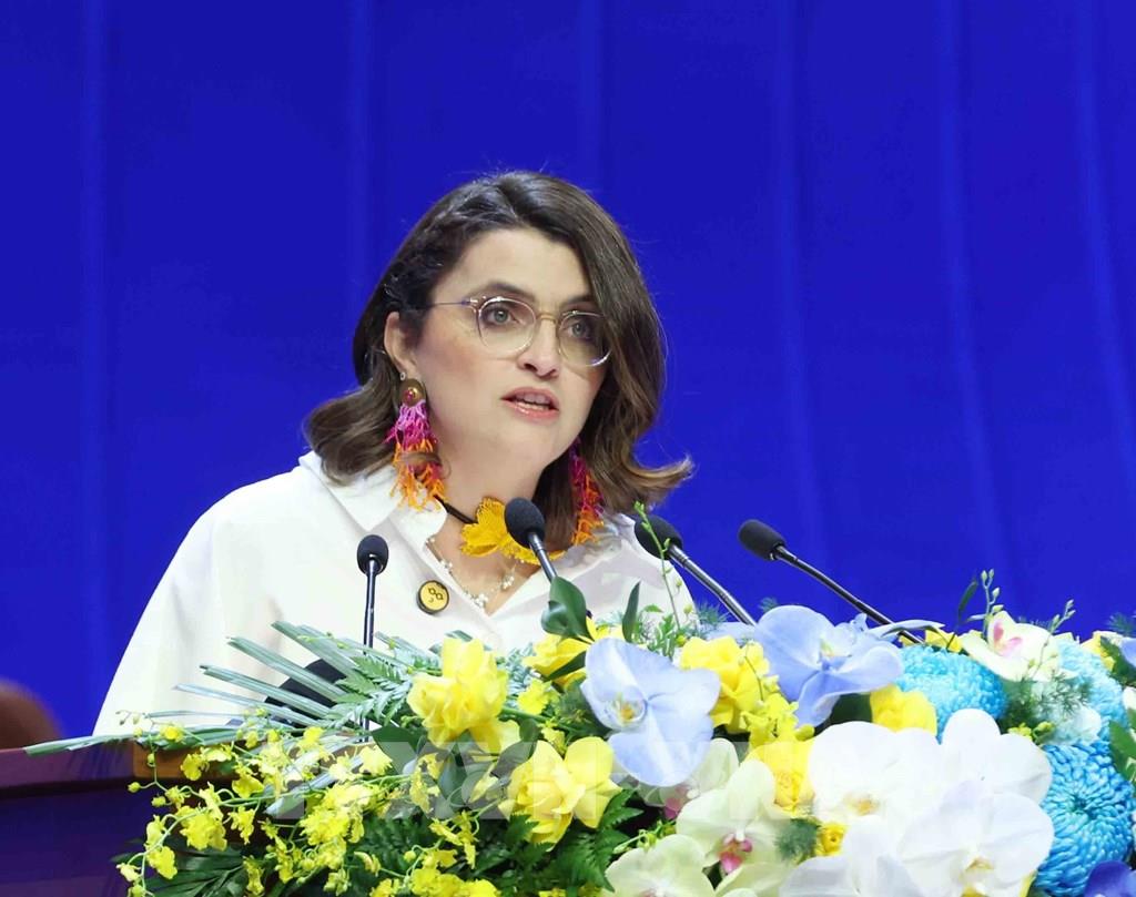 Phó Tổng thống Ecuador María José Pinto González Artigas phát biểu tại Phiên thảo luận toàn thể cấp cao thứ nhất. Ảnh: Phương Hoa - TTXVN