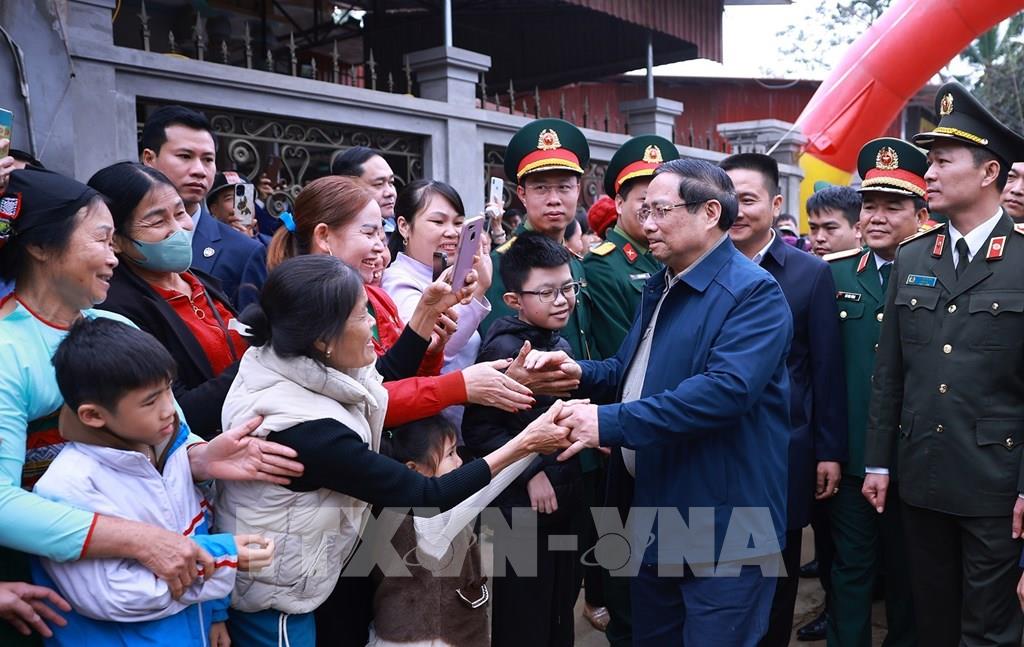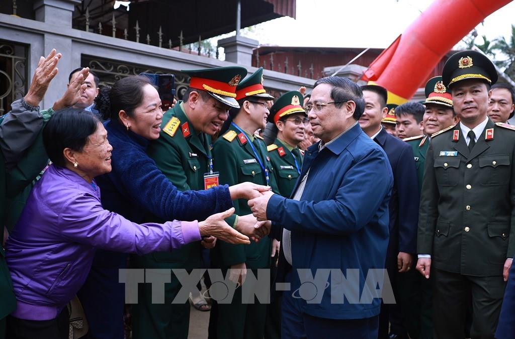 Thủ tướng Phạm Minh Chính với quân và dân xã Cẩm Thạch, Thanh Hoá. Ảnh: Dương Giang-TTXVN