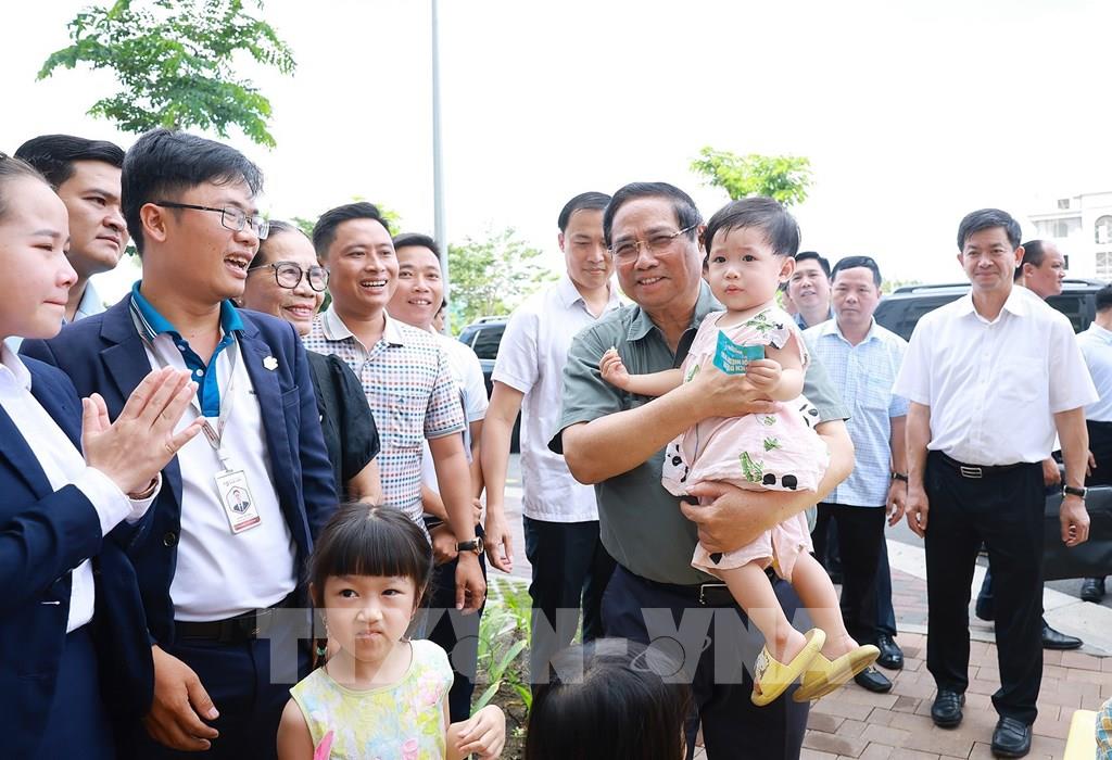 Thủ tướng Phạm Minh Chính thăm người dân sinh sống tại Khu nhà ở xã hội của thành phố Cần Thơ. Ảnh: Dương Giang-TTXVN