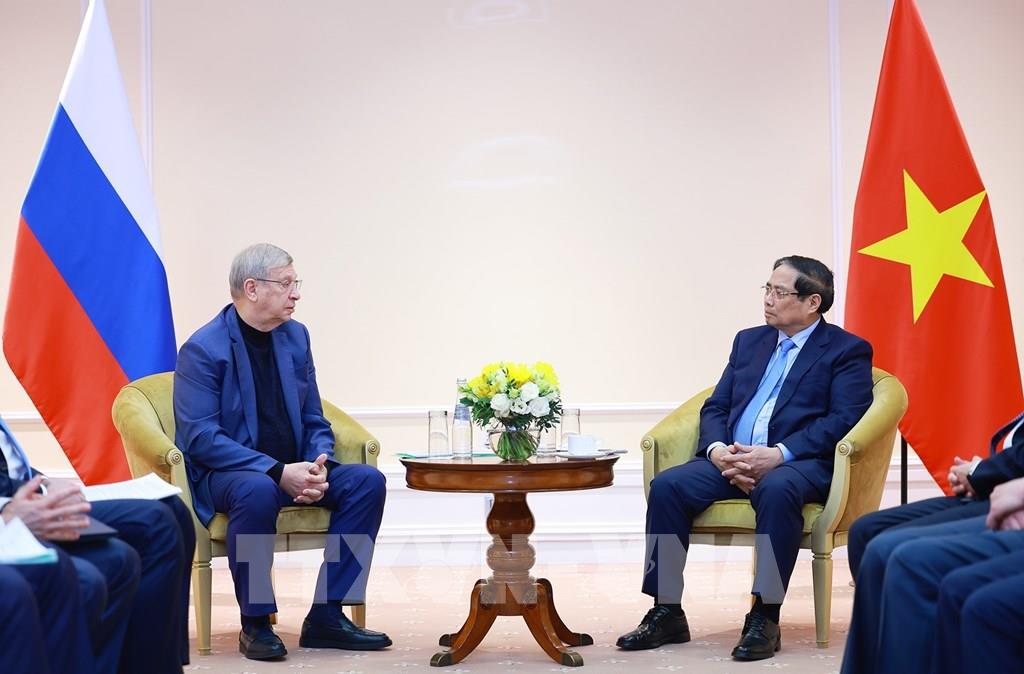 Thông tin về chiến lược phát triển của Việt Nam, Thủ tướng Phạm Minh Chính cho biết Chính phủ Việt Nam luôn ủng hộ và tạo điều kiện cho các doanh nghiệp hai nước hợp tác trên các lĩnh vực mà Liên bang Nga, trong đó có Tập đoàn AFK Sistema, có thế mạnh và Việt Nam đang có nhu cầu như: xây dựng và kết nối cơ sở dữ liệu, công nghệ thông tin, chuyển đổi số, an ninh mạng, dược phẩm, năng lượng hạt nhân, viễn thông, thị trường tài sản mã hóa, thúc đẩy khai thác không gian ngầm, không gian vũ trụ, trong đó có việc phát triển tàu điện ngầm tại Hà Nội và Thành phố Hồ Chí Minh…