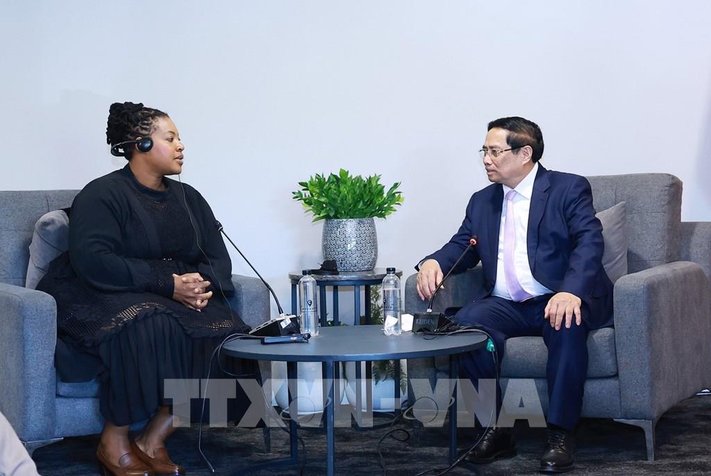 Thủ tướng Phạm Minh Chính tiếp bà Sesakho Magadla, Tổng Giám đốc điều hành Công ty Dầu khí Quốc gia Nam Phi. Ảnh: Dương Giang-TTXVN