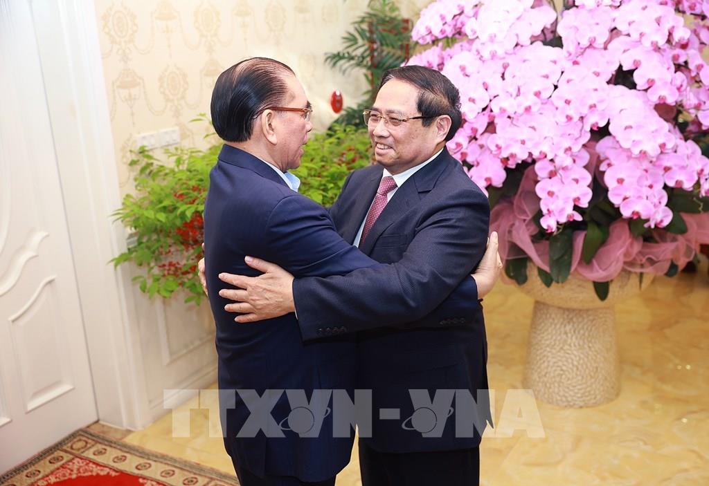 Thủ tướng Phạm Minh Chính thăm nguyên Tổng Bí thư Nông Đức Mạnh Ảnh: Dương Giang-TTXVN