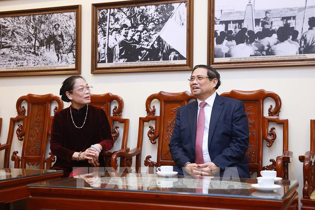 Thủ tướng Phạm Minh Chính thăm, chúc Tết gia đình cố Tổng Bí thư Lê Khả Phiêu. Ảnh: Dương Giang-TTXVN
