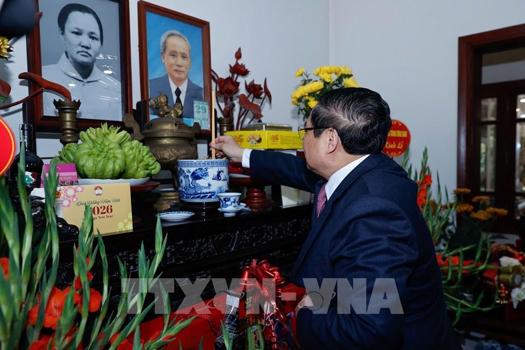 Thủ tướng Phạm Minh Chính thắp hương tưởng nhớ cố Tổng Bí thư Lê Duẩn. Ảnh: Dương Giang-TTXVN ; Nhân dịp đón Tết Nguyên đán Bính Ngọ, sáng 14/2/2026, Thủ tướng Phạm Minh Chính đến thăm, c
