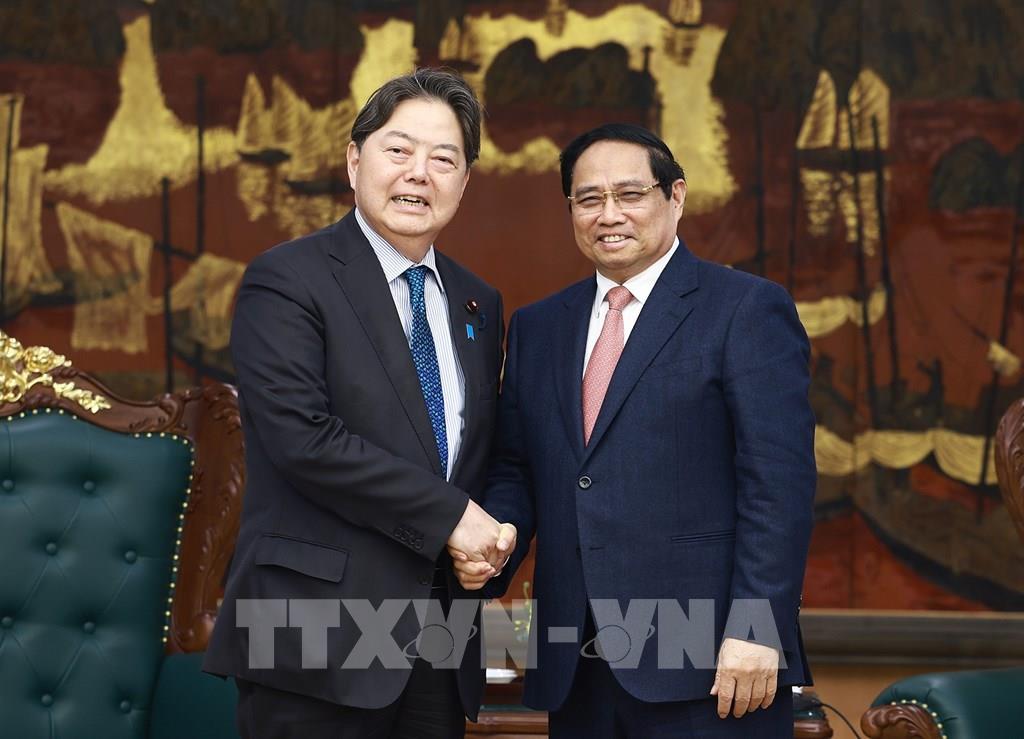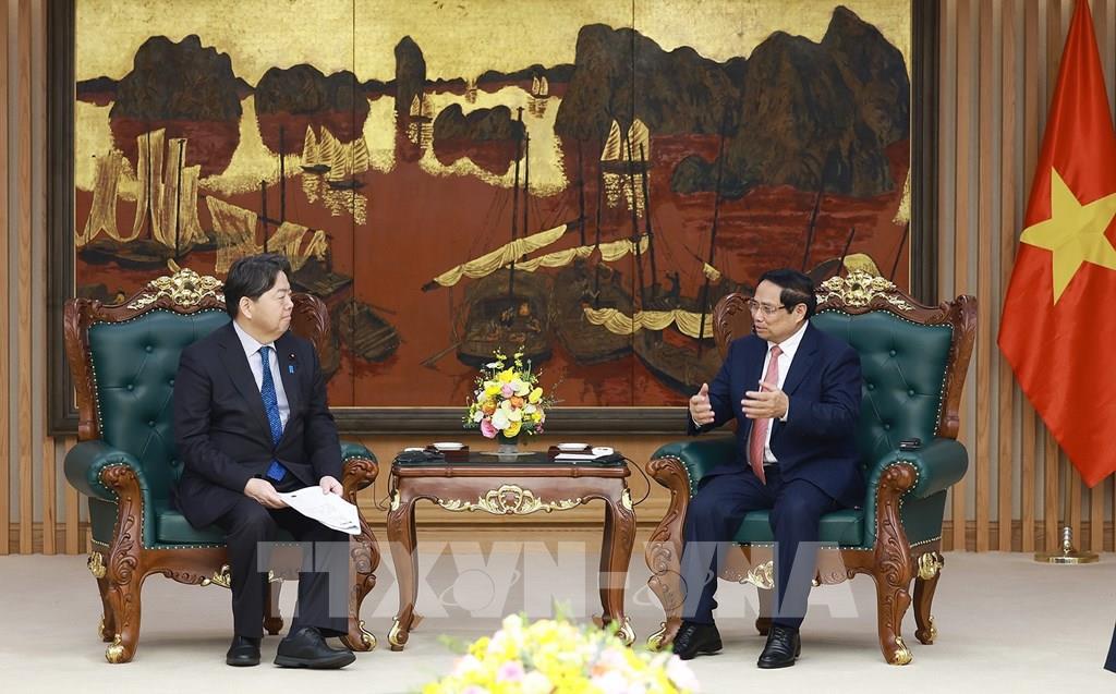 Thủ tướng Phạm Minh Chính và ông Hayashi Yoshimasa, Bộ trưởng Nội vụ và Truyền thông Nhật Bản. Ảnh: Dương Giang-TTXVN