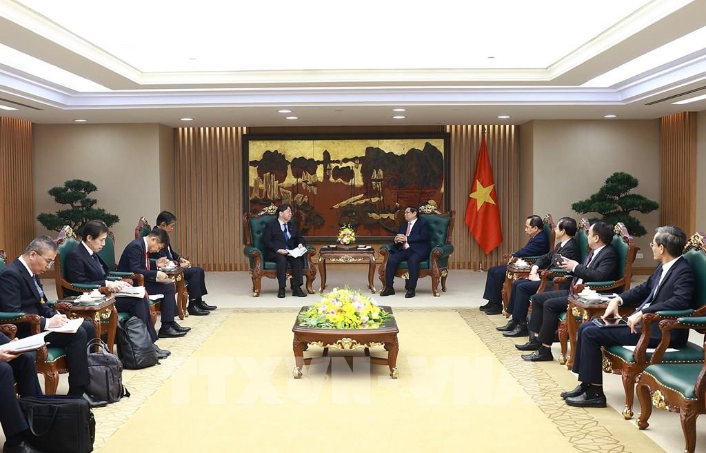Thủ tướng Phạm Minh Chính tiếp ông Hayashi Yoshimasa, Bộ trưởng Nội vụ và Truyền thông Nhật Bản. Ảnh: Dương Giang-TTXVN