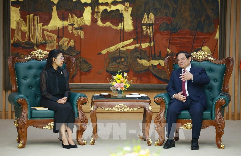 Thủ tướng Phạm Minh Chính tiếp Đại sứ Thái Lan tại Việt Nam Urawadee Sriphiromaya. Ảnh: Dương Giang-TTXVN