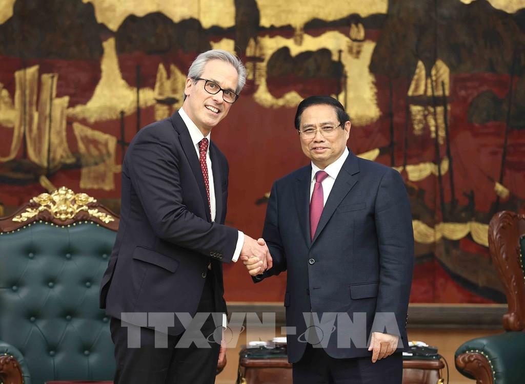 Thủ tướng Phạm Minh Chính tiếp Vụ trưởng Vụ Quản trị Đại dương quốc tế và Nghề cá Bền vững Fernando Andresen Guimaraes. Ảnh: An Đăng - TTXVN