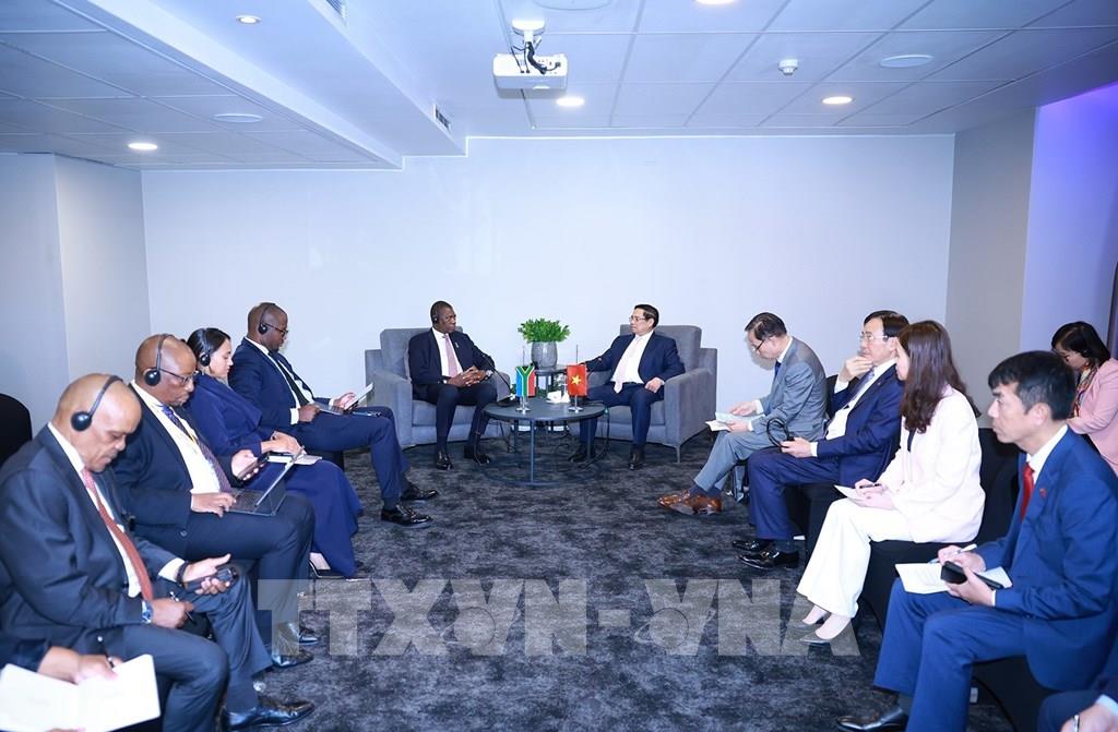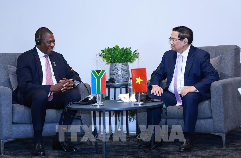 Vui mừng gặp lại Phó Tổng thống Nam Phi Paul Mashatile, Thủ tướng Chính phủ Phạm Minh Chính cho biết, trong chuyến công tác tới Nam Phi lần này cùng với đóng góp cho thành công của Hội nghị thượng đỉnh G20 do Nam Phi là Chủ tịch, Thủ tướng sẽ cùng Tổng thống Cyril Ramaphosa thúc đẩy đưa quan hệ hai nước lên tầm cao mới, mở ra giai đoạn phát triển mạnh mẽ và thực chất hơn nữa trong quan hệ hai nước.