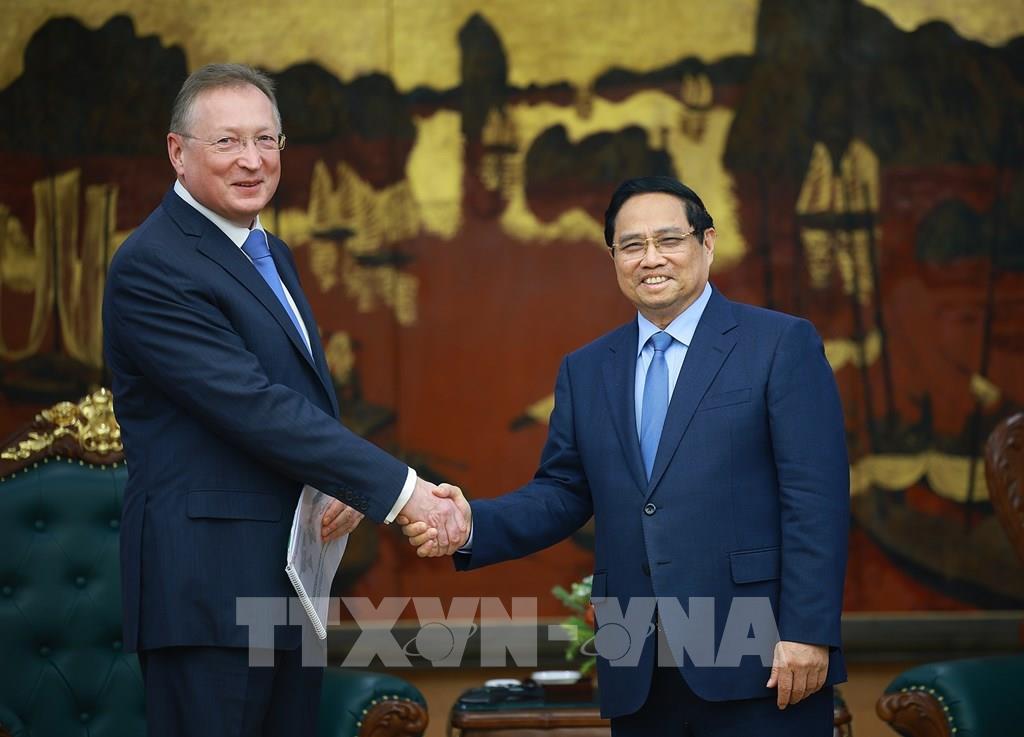 Thủ tướng Phạm Minh Chính tiếp ông Sergei Kudryashov, Tổng Giám đốc Tập đoàn Zarubezhneft (Liên bang Nga). Ảnh: Dương Giang-TTXVN